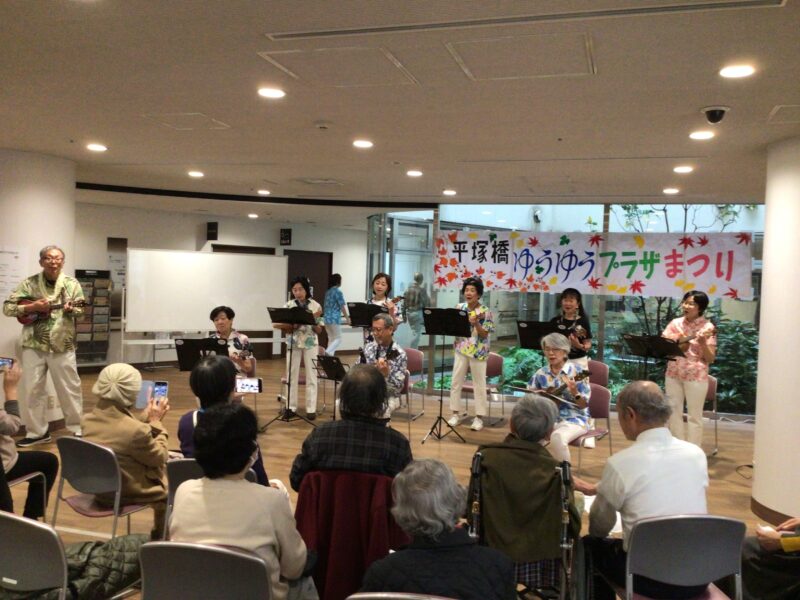 第一部は平塚橋ゆうゆうプラザで年間を通じて活動されている団体のウクレレ演奏、太極拳、社交ダンス、気功の7団体の発表がありました。日頃の練習の成果を発揮され、素晴らしい発表となりました。