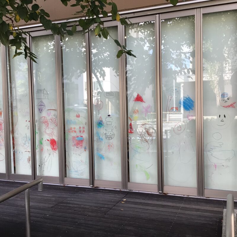 第二部は地域交流スペースで窓ガラスにお絵かき、スーパーボウルすくい、ぬり絵、絵本の読み聞かせ、フリーマーケットや輪投げを行い、たくさんのお子さんたちが楽しまれていました。また、パン工房プチレーブさんの美味しいパン販売もありました。