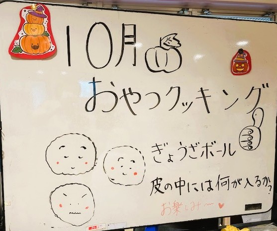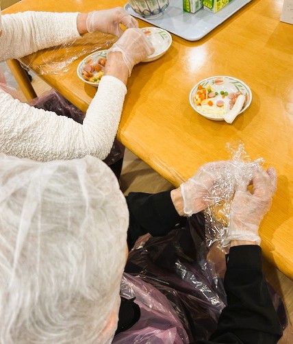 ウインナーとミックスベジタブル、チーズをギョウザの皮にのせ、端を水でぬらして「ぎゅっ」と包みます。みなさまのギョウザの皮を扱う手つきは慣れたもの。手早く、そしてとても集中されていました。たこ焼き器でコロコロ転がしながら焼けば、こんがり丸いギョウザの出来上がり。